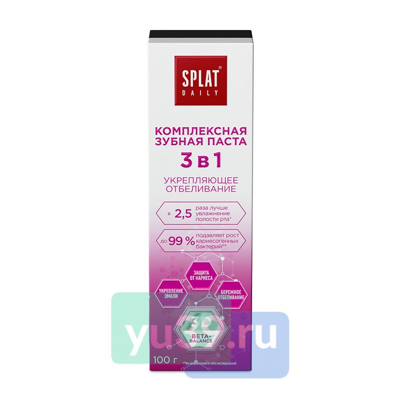 SPLAT — ведущий разработчик и производитель профессиональных решений в категориях ухода за полостью рта, бытовой химии и детской косметики. Бренд SPLAT создает средства для эффективного профессионального ухода за полостью рта в домашних условиях. Каждый продукт направлен на решение конкретной задачи.